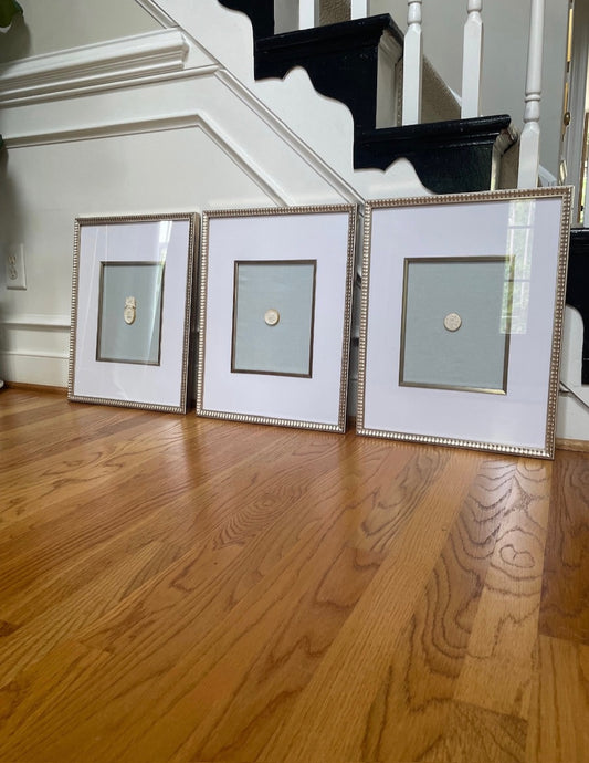 Scalloped Frame Intaglio with Blue Linen Background